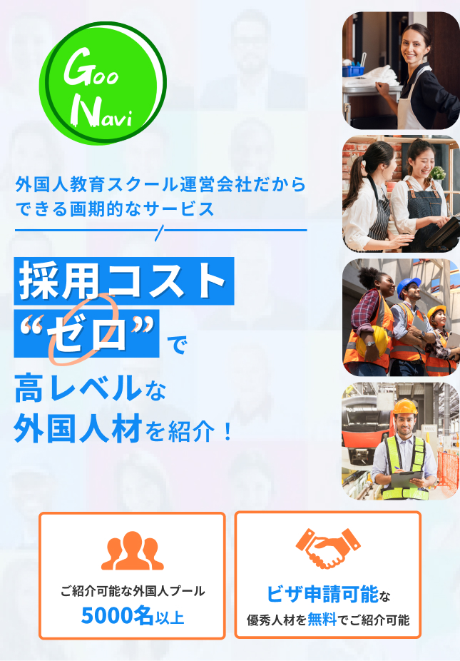 株式会社グーナビは、外国人優秀人材を企業に完全無料で紹介しています。